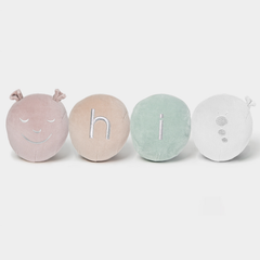 Soft and oh-so snuggly, our velvety plush tones of fresh green, smooth beige, dusty pink and bright white are carefully finished with glimmering silver embroidery.