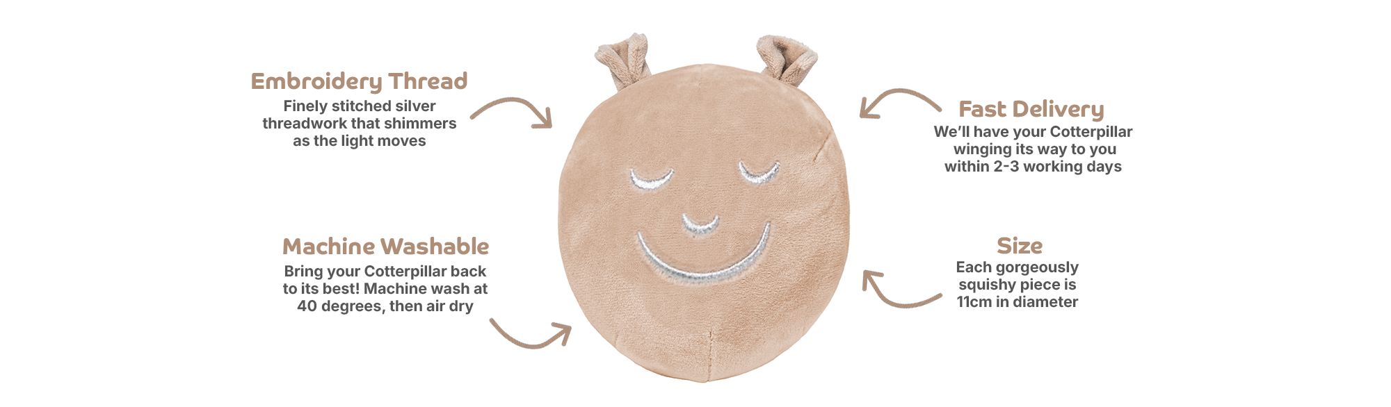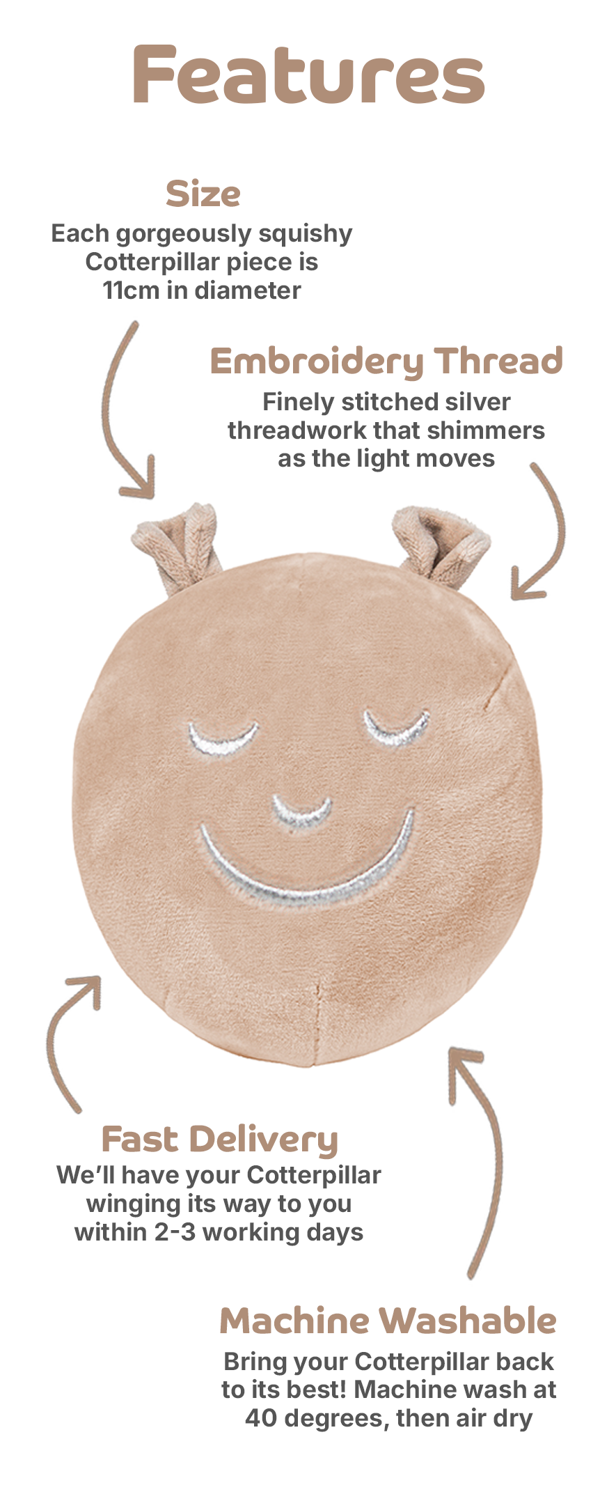 As your little one grows, the Cotterpillar can move with them, fitting perfectly on bed headbands, on a shelf, and even on their ball pit! They make the perfect gift for newly promoted older siblings, too!