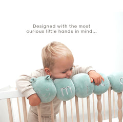 The Cotterpillar fastens effortlessly to the cot rail, sitting snuggly with its clever, silver elasticated hook-and-loop feature. Practical for parents, it’ll stay firmly in place however playful those little explorers become.